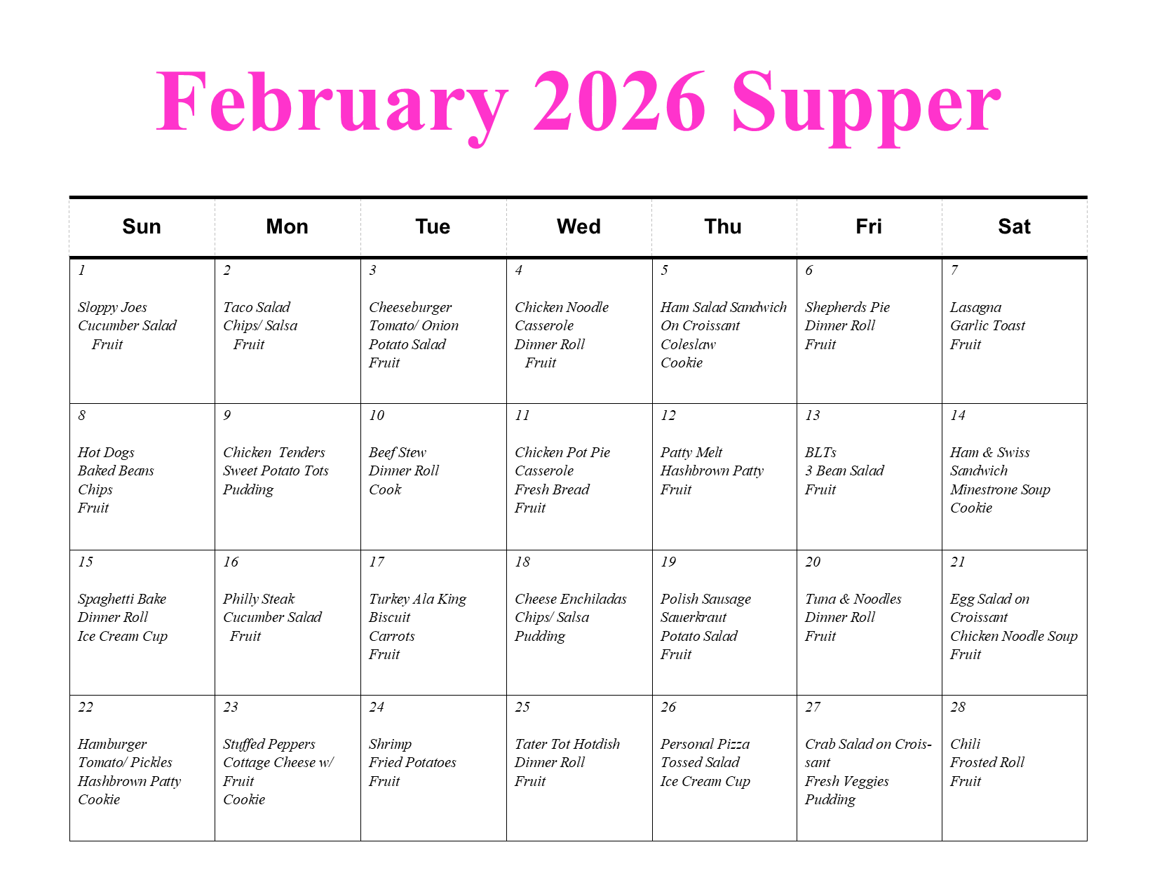 - Our February menus feature warm, nourishing meals that provide the nutrients needed to support immunity and overall health during cold and flu season.