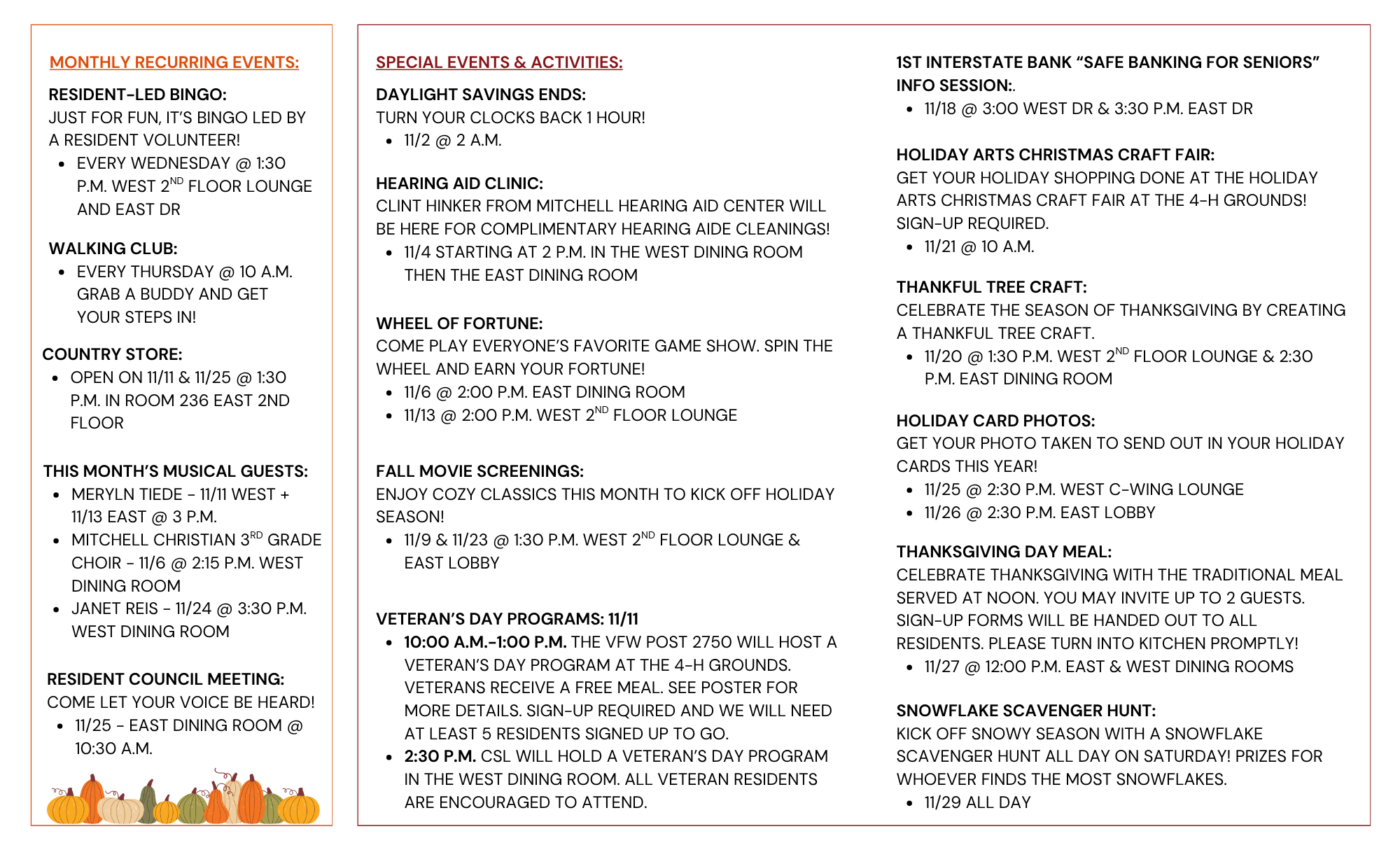 November has arrived at Countryside Living, and with it comes a full month of activities, events, and delicious seasonal meals for our residents to enjoy. Our November Activity Calendar and Menus are now available, and we’re looking forward to a wonderful mix of gratitude, creativity, and community connection.
