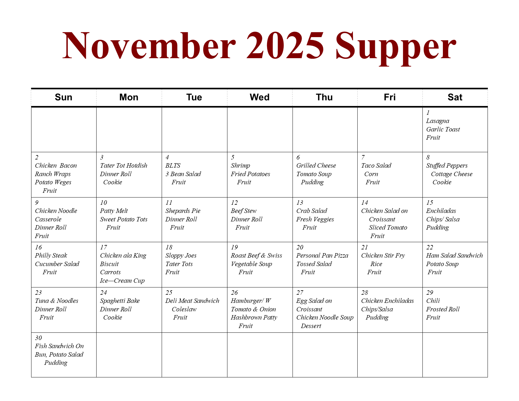 Nothing brings people together quite like Thanksgiving. Our Thanksgiving Day meal will feature delicious favorites prepared by our talented kitchen staff—a warm, cozy gathering to share gratitude and friendship.