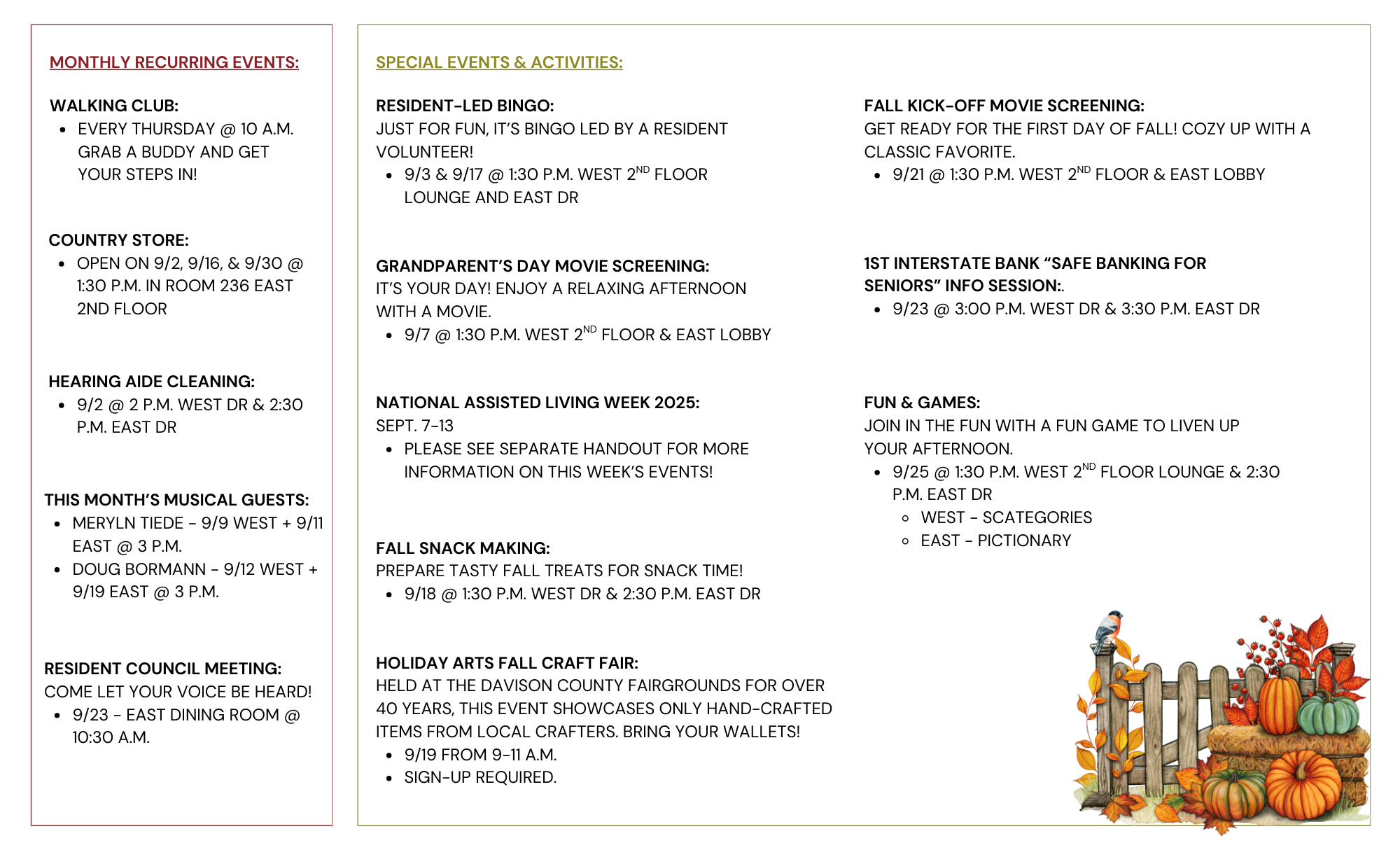As summer winds down and we welcome the crisp days of fall, our residents at Countryside Living have a full month of activities to look forward to! Our September Activity Calendar and Menus are out, and they’re packed with fun, creativity, and community.